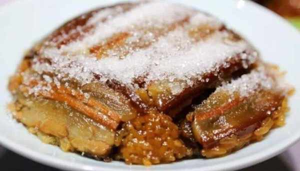 沙肉蒸好後,從蒸鍋裡拿出來,然後準備一個盤子,把碗放在盤子裡,沙肉就做好瞭,表面撒上適量的糖,看起來很開胃,味道也不錯也超級好吃,雖然這道菜看起來很復雜,但其實做起來非常簡單,年夜飯一定不能錯過,快來學起來吧!