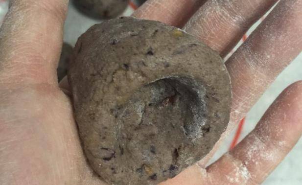 5、將面團、紅棗和適量小蘇打揉勻,切成等份。將涼粉再次揉成饅頭狀。