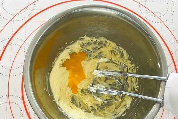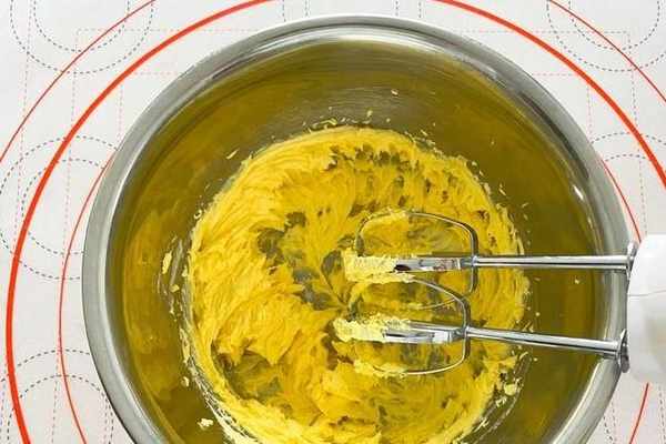 然後用打蛋器打發,使黃油打發至蓬松狀態