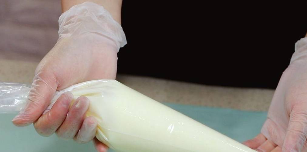 直到鍋內酸奶濃稠、起密集大泡即可,關火。等酸奶餡兒冷卻後,裝入裱花袋當中,放入冰箱冷藏半小時。