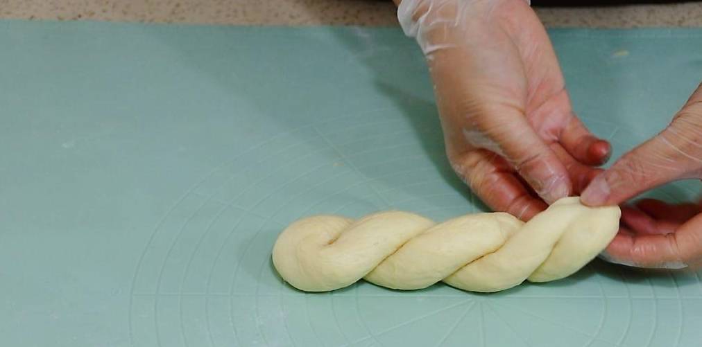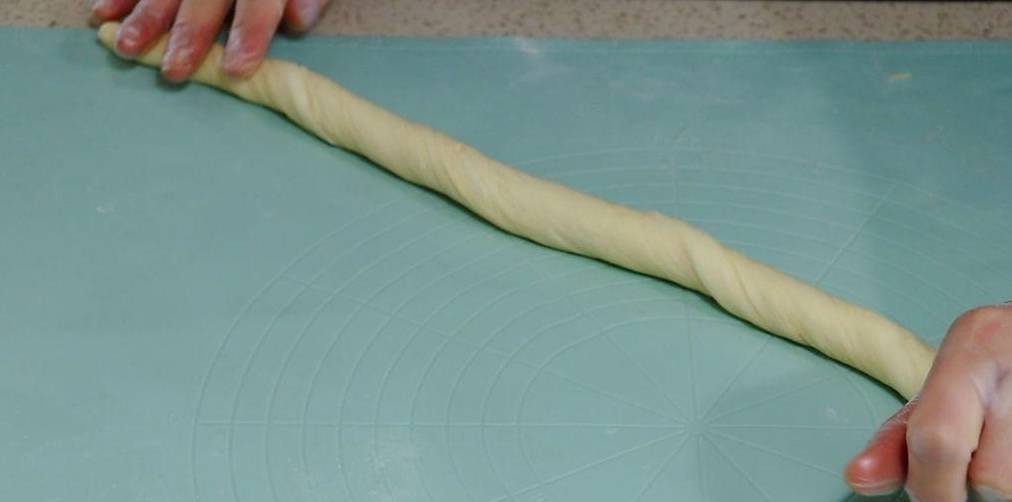 拎起面條,面條會順著一個方向自然上擰成麻花狀。