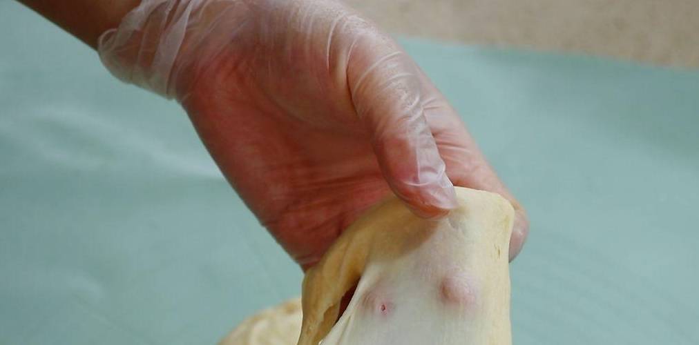 卷好以後,給皮子搓一搓,搓成長條,兩手分別往不同方向搓條子。