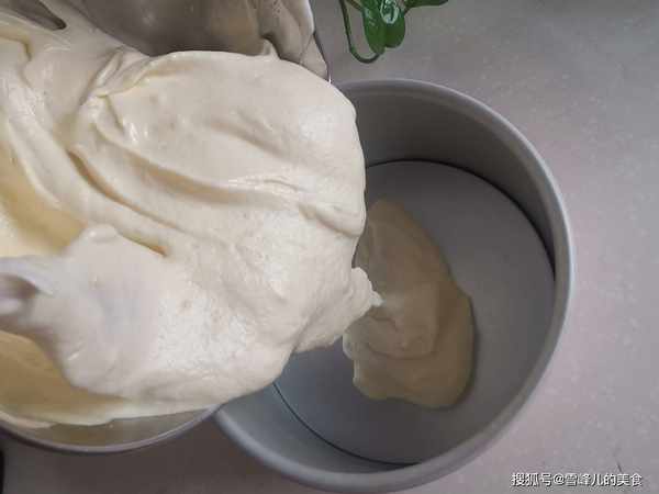 第四步:把攪打好的蛋糕糊倒入8寸蛋糕模具中。