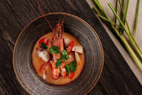 虎蝦冬蔭功 是一道非常經典的泰國菜式,採用瞭新鮮的泰國大虎蝦,加上椰漿、香茅、各種新鮮蔬菜燉煮而成,造就其酸辣鮮香的東南亞特色美味,令人回味無限,是每一位食客的必食菜式。