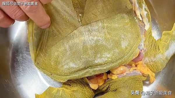 1.首先把甲魚宰殺清洗幹凈,冷水下鍋燙一下,甲魚的表皮才容易脫落,水溫四成熱時,水面漂浮白沫,這時候就可以把甲魚撈出來瞭,裝入盆中,撕去外皮。