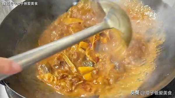 5.起鍋加入豬油和菜籽油,把五花肉倒入鍋中煸炒出香味,再倒入蔥薑蒜,炒至發黃,炒出香味,再倒入所有香料炒勻,再將甲魚倒入鍋中翻炒均勻,煸炒兩分鐘,加入適量的料酒去腥,再加入高湯或開水,
