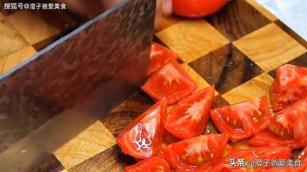 1.先把西紅柿的皮燙一下,很容易就可以撕下來,切成稍大一點的塊,