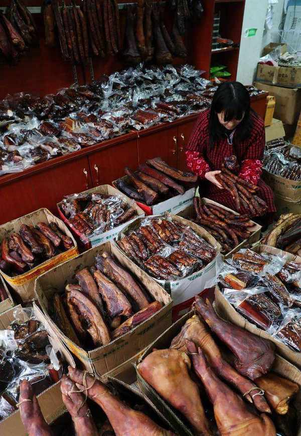 這些煙熏臘肉除瞭土傢人過年自食待客外並通過電商銷往全國各地。