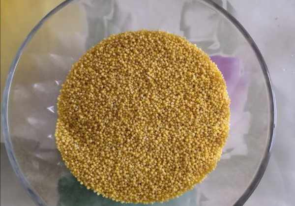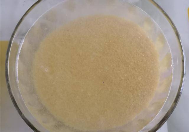 將小米放到碗中,倒入沒過小米的清水,靜置10分鐘,通過浸泡可以讓小米吸收一定的水分,同時也可以將米中的沙或者浮皮泡出來,吃起來更健康。
