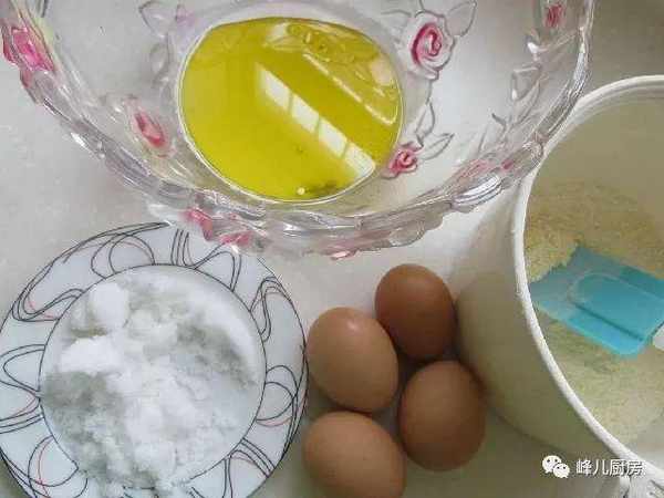 雞蛋4個,低筋面粉80克,葵花籽油40克,牛奶70克,白糖50克。