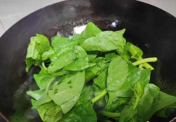 2.倒入木耳菜,大火快速翻炒,因為木耳菜含有很多的汁水,這樣做出來的木耳菜又脆又綠又好看。