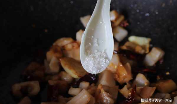 4、倒入1勺生抽、孜然粉、五香粉、小半勺白糖、一小勺食鹽調味,翻炒均勻,出鍋之前再撒上些許白芝麻一起翻炒均勻即可出鍋。