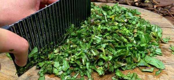 之後鍋中加水燒開,加少量食鹽和食用油,倒入蒲公英焯水,要註意不要時間過長,否則的話就會造成營養流失。焯燙好的蒲公英撈出來放進涼水中過涼,然後撈出來攥幹水分。把蒲公英放在案板上切成小碎段備用。