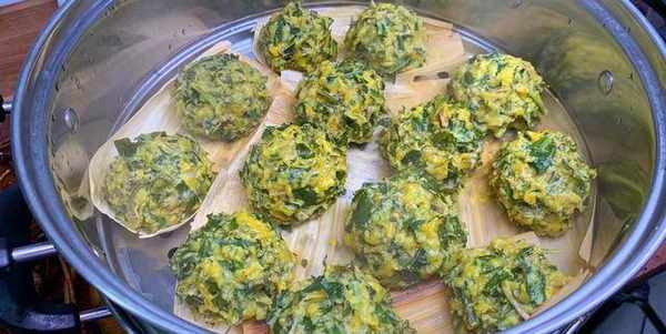 水燒開後,把籠屜放進鍋中蒸25分鐘,然後再燜兩分鐘,就可以出鍋瞭。香噴噴的蒲公英窩窩頭,咬上一口,滿滿的小時候的味道。