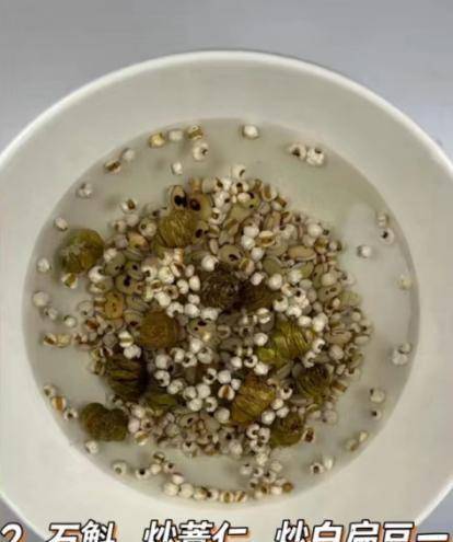 2:先把石斛用溫水泡發,將薏仁,白扁豆放在碗中,加上適量清水浸泡半個小時,這樣節省煮薏仁的時間。