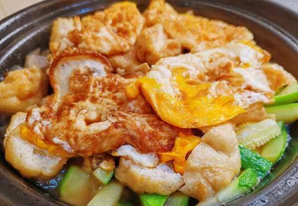 8、傢裡沒有肉瞭,可以煎幾個荷包蛋也一起燉一鍋,把煎好的雞蛋平鋪在豆腐泡上面蓋上鍋蓋,開小火燉20分鐘左右即成濃香味十足的一鍋燉。