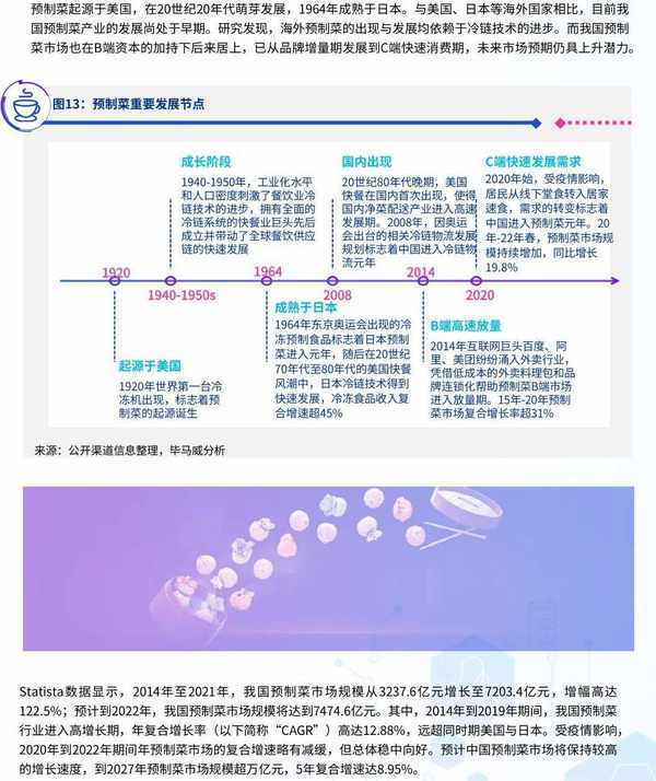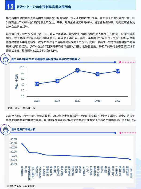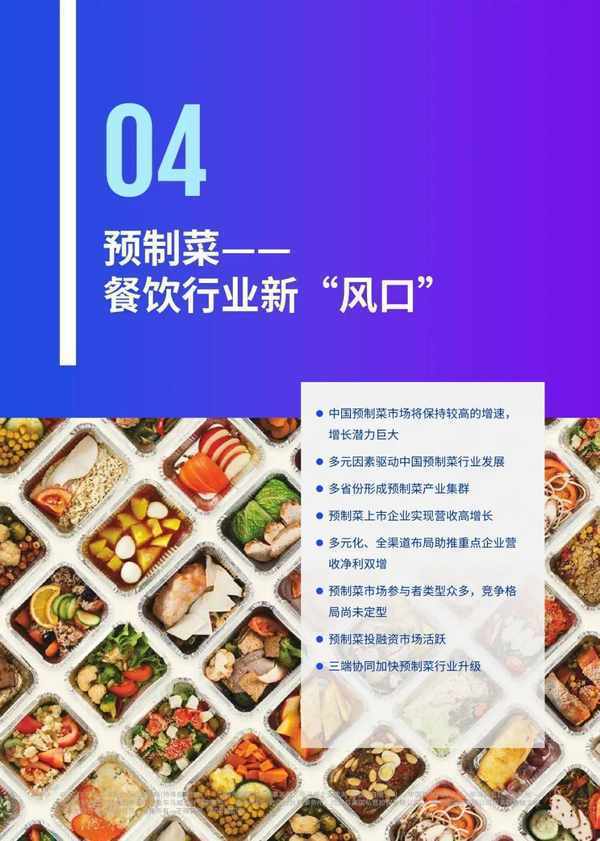 報告匯總瞭行業數據、市場扶持政策、行業投融資情況、行業發展新特點以及企業服務方案等內容,詳細分析餐飲行業兩大細分賽道——茶飲、預制菜的發展情況,幫助餐飲行業參與者更全面地瞭解行業現狀,最大程度挖掘市場潛力。