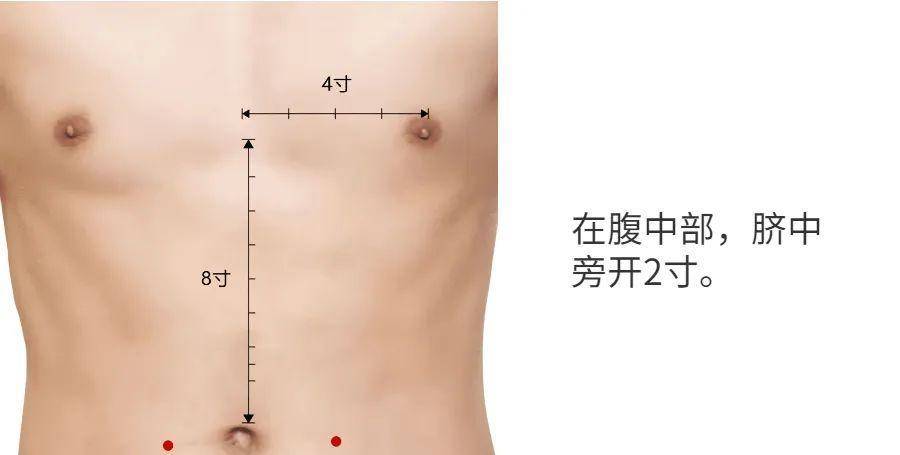 「天樞穴」:肚臍旁開2寸。