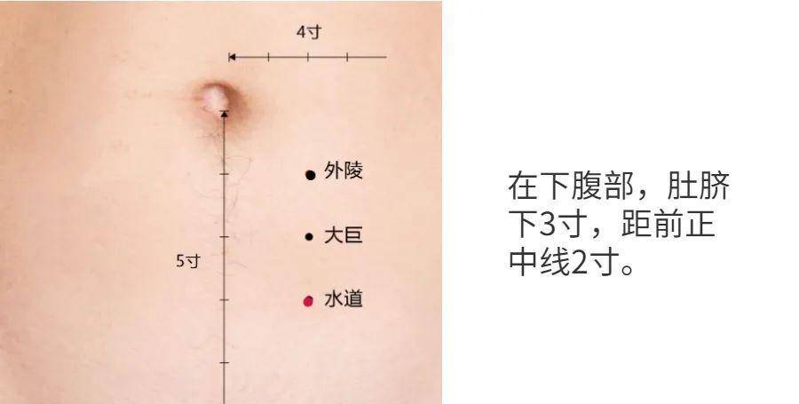 「水道穴」:當臍中下3寸,距前正中線2寸。
