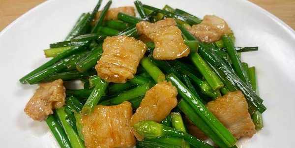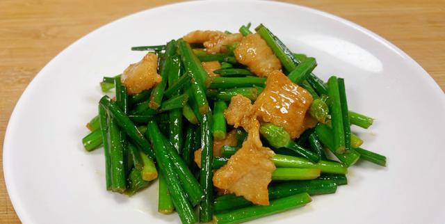 具體做法:1、買回來的韭菜苔,它上面會有未開花的韭菜花,這個韭菜花不要掐掉也可以食用,它還可以摘下來剁成碎末涼拌吃,非常的鮮嫩美味。把韭菜苔頭部老一點的莖去掉不要,然後把它切成三厘米左右的小段,放入鹽水中浸泡10分鐘,讓韭菜苔更加的翠綠,最後撈出來瀝水備用。接下來再準備一小塊的五花肉,切成小片後清洗一下裡面的血水,放入1勺蠔油、少許味極鮮、少許生粉和料酒抓均勻醃10分鐘,炒出來的肉片更加的滑嫩不柴。