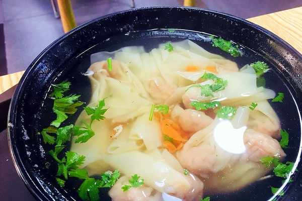 餛飩的內陷味純肉所制,輕輕咬在嘴裡,可以長到肉質非常緊實,而且沒有任何肉裏的筋膜與肥肉摻雜其中,個人感覺唯一不足的就是餛飩的湯頭過於清淡,甚至是無味,幾乎就是沒有添加任何調味料的清水,也許老闆只想讓客人嘗到餛飩本身的肉香,從而不用其他店鋪都會用的各種肉湯,從而奪了餛飩內陷的美味。