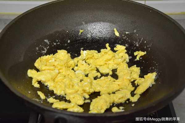 4. 熱鍋熱油,雞蛋入鍋,稍凝固後劃散;