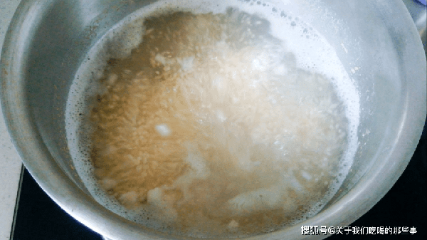 2、起鍋加水,大火燒開,倒入泡好的小米,再次煮開後小火煮20分鐘,加入一小勺食用油,可以防止溢鍋。用鏟子攪拌均勻,半掩鍋蓋煮一會兒。