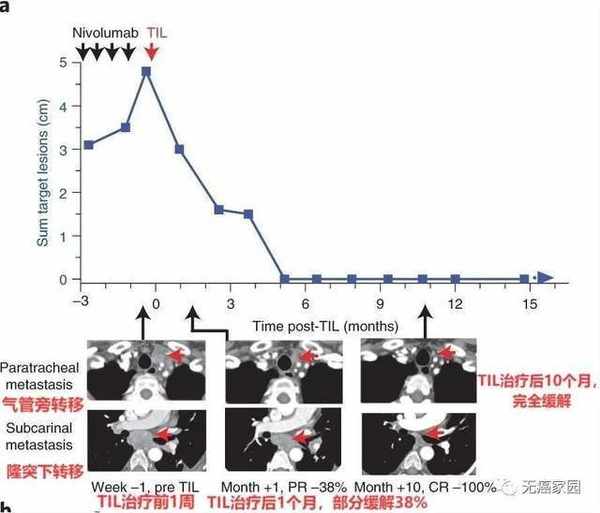 刊登在2018年《自然醫學》的案例上,一名性激素陽性轉移性乳腺癌患者接受了4種突變蛋白的TILs。治療22個月後,患者腫瘤完全消失,且4年後仍未出現進展或復發。