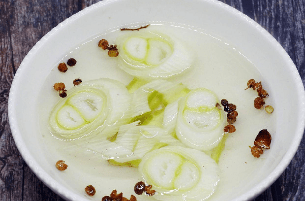 步驟一:先準備蔥薑花椒水,大蔥切段、生薑切片,十餘粒花椒洗凈,把蔥薑、花椒粒放入溫水中浸泡30分鐘備用。