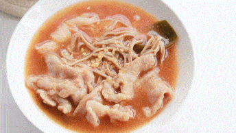 肉片煮出來是嫩嫩的,有很直接的酸香,猛地沖進嘴裡和鼻腔,瞬間開胃。