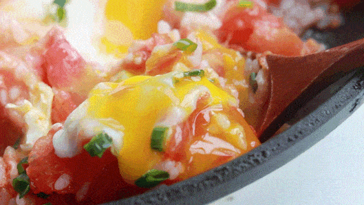 和普通的番茄炒蛋+米飯不同,這個燴飯的番茄味更濃鬱,有很明顯的屬於番茄的酸和甜,絲毫沒有未成熟番茄的生澀感。