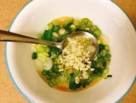 步驟3、第二天就可以把發酵完成的面團搬出來瞭,稍回下溫後拍打排氣,把它分為小劑子,然後壓平,蓋上保鮮膜醒一會兒,蒜去皮,切碎,香蔥一樣切碎;