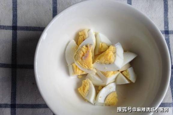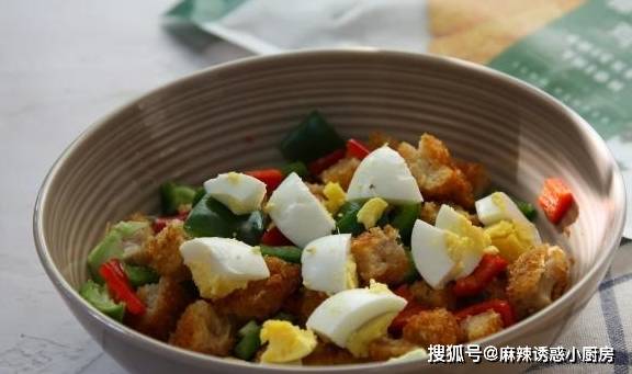 雞蛋煮熟切成小丁,彩椒洗凈切成小丁