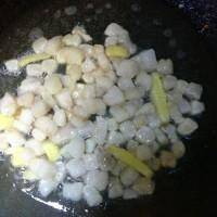 3.用剩下的生薑和豬肉丁翻炒