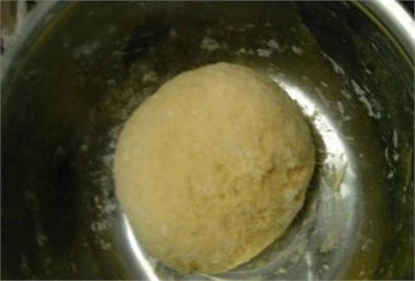 蓋上蓋子揉半小時,然後大力揉,再揉十分鐘,然後大力揉捏。沒有水的面團會越來越難混合,直到面團表面光滑,然後揉五分鐘。