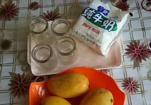 接下來,我們準備三個芒果,一袋純牛奶,一點白砂糖和鍍金片。