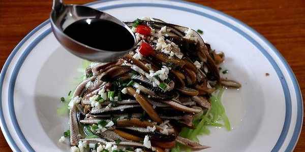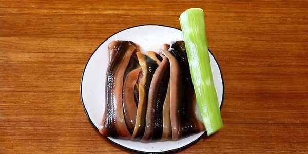 1、鱔魚買的時候處理好之後,將表面的粘液洗幹凈,然後切成小段;