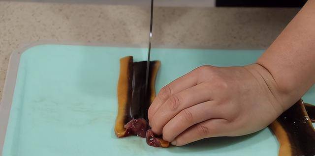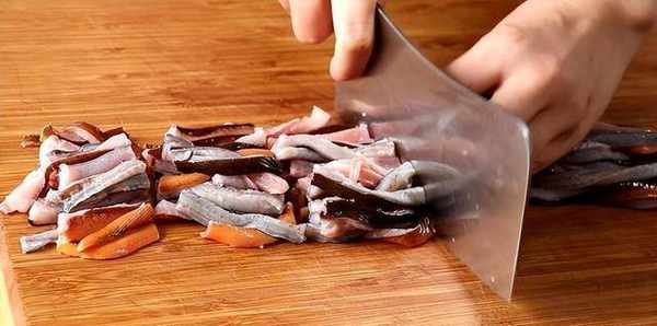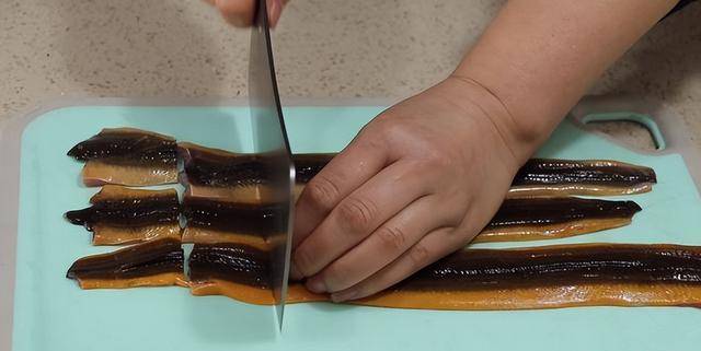 3、洗幹凈之後,將黃鱔切成粗絲;