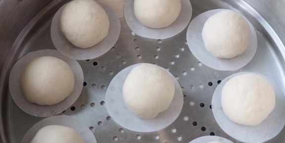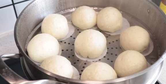 冷水上鍋蒸,水開再蒸15分鐘,關火燜5分鐘,蓬鬆暄軟的奶黃包就做好了,奶香味十足;