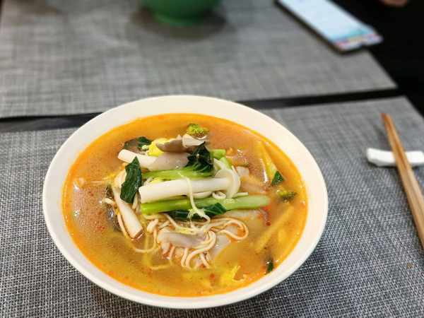 今天,我做瞭兩碗素食面條,並添加瞭很多蘑菇和蔬菜。雖然沒有肉,但味道超級美味,甚至比肉還好吃!