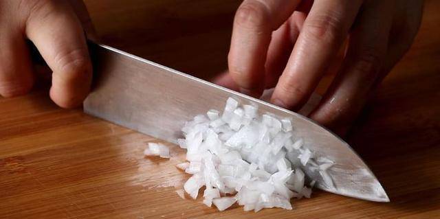 1、洋蔥、大蒜、小蔥這三種香辛調味料給它切末。
