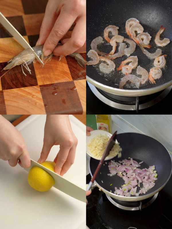 用刀把蝦背劃開,扯出蝦線