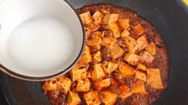 小貼士:加水然後就把豆腐放裡面,這樣燉一會以後豆腐會入味一些,水開瞭勾芡就可以啦!一定要放淀粉水哦,不放豆腐沒啥味道,因為味道都在湯汁裡,放淀粉湯汁濃稠附著在豆腐上更有味道哦
