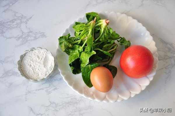 50克中筋面粉、50克菠菜汁、50克雞蛋、1個番茄、1/2個番茄