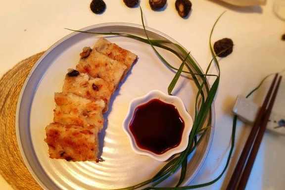 煎好後可以將蘿蔔糕放在吸油紙上吸去多餘的油分在擺盤。如果覺得蘿蔔糕味道淡的話可以自己調一個蘸料汁,還可以搭配芝麻和香油哦。