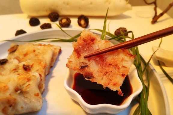 【所需食材】:兩百五十克白蘿蔔,兩根廣式臘腸,一百五十克粘米粉,幹香菇,海米,適量食鹽,食用油,胡椒粉,純淨水,蚝油。