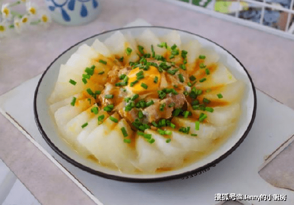 蒸好後,放些蒜末、蔥花,澆上熱油,這道菜就做好瞭,清爽不油膩,非常好吃。