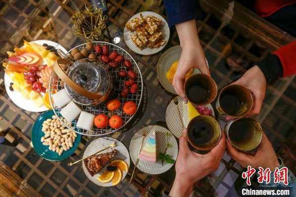 茶客祝雅潔說:“大傢一邊喝茶一邊閑聊,還能DIY一些自己喜歡食物,這種喝茶的方式很放松很休閑。”