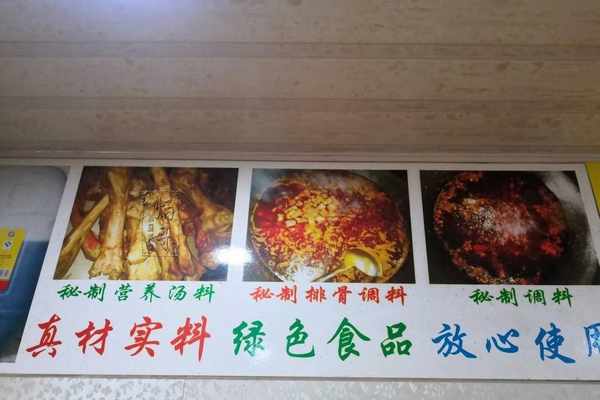 吃著面的時候我才註意到,原來店裡還有一塊招牌,上寫的是小吃所用的各種食材。可以看到是比較正宗的用料,味道看著這些用料似乎嘴裡的面都更香瞭。
