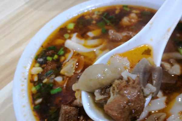 先來看看這份砂鍋面,給人的第一印象就是用料很足,底下是面,上面鋪瞭很多的肉。因為加瞭店裡的辣椒油,所以吃起來又辣又燙,沒一會就渾身冒汗瞭,確實很好吃。